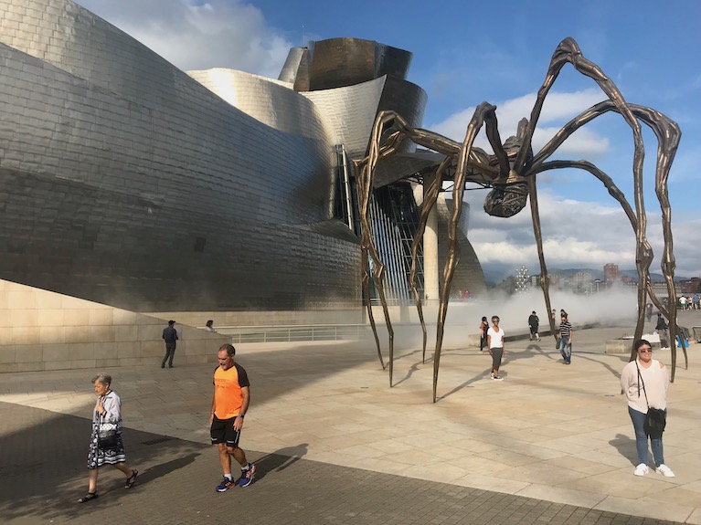 Of course, the jewel in the crown is the Guggenheim, which is even more breathtaking in person. It truly is a marvel. We opted against going through the whole museum, focusing instead on two featured exhibitions, one by Joana Vasconcelos. Titled I’m Your Mirror, the exhibition explored female identity in large sculptures made of everyday objects. A chandelier made entirely of tampons. A mask made of gilded mirrors. Large stilettos made of frying pan lids. Sadly no photos were allowed.