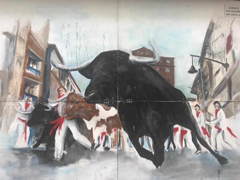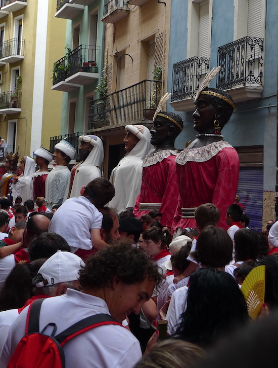 Although we didn’t spend the night in Pamplona, it deserves its own entry because OH MY GOD! It was such an amazing stop! We could’ve checked out the running of the bulls, but as neither of us had any interest in being caught up in that mayhem, we opted to leave a little later in the morning to avoid it. We timed it perfectly! We passed many tourists on their way out after having cheated death, but the real St. Fermin celebration was just getting started. How lucky were we? I’ll tell you. Our meanderings through the city streets landed us right at the start of the Procession of the Giants and Big Heads of St. Fermin. Literally, we were just standing there and then BOOM! The parade began and the giants were walking right in front of us! (Click here to see their dance!)